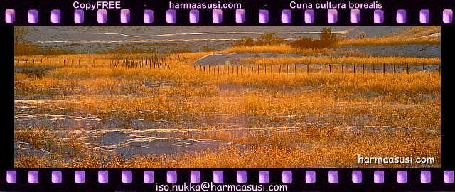 Kultaisia niittuja valkoisten nietosten ahmimina,